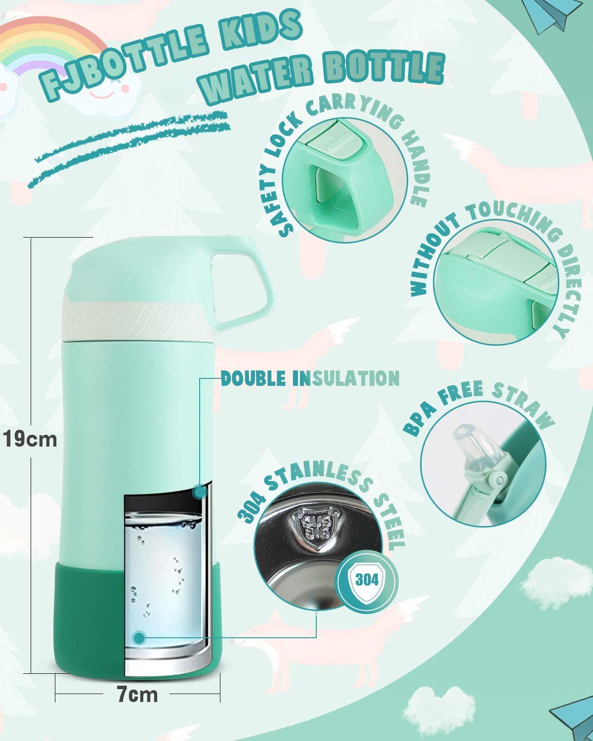 400ml Stainless Steel Insulated Kids Thermo Water Bottle, Vacuum Flask With Straw